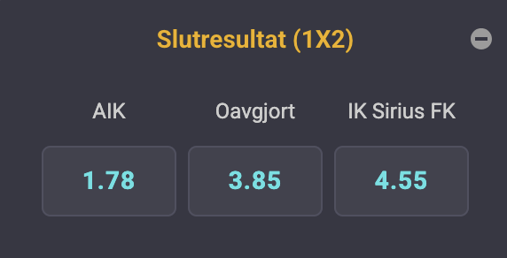 Ska man slåss om de finaste placeringarna i tabellen så kan det tyckas att ligatolvan ska besegras på hemmaplan, men Sirius har prickat in formen. Det finns mycket offensiv skicklighet i de blåsvarta och förra helgen slog man Hammarby med 3-1 på hemmaplan. Det syns även i oddset inför matchen där Kristoffer Nordfeldt inte förväntas att hålla nollan intakt.