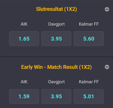 För den som tror på AIK-seger ger hemmaseger 1,65 gånger insatsen.