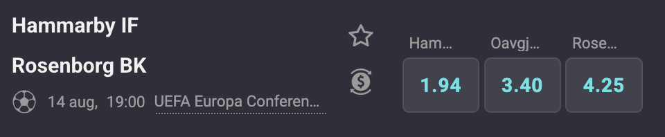 Hammarby har sett helt oberörda ut av att spela på två fronter och den allsvenska guldstriden lever i allra högsta grad. Men innan man tar emot GAIS på hemmaplan väntar en minst lika viktig match. Den mot Rosenborg i kvalet till UEFA Conference League. De två lagen kände på varandra under förra veckan men utan att något av dem gick segrande ur striden. På 3Arena ses Hammarby som favoriter och ett spel på seger efter 90 minuter ger knappt dubbla pengen tillbaka.