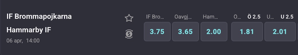 Hammarby gäller som favoriter idag. Bortasegern ger 2,00 i odds hos Coolbet. Krysset och ettan ligger för närvarande på 3,65 respektive 3,75. Som vanligt i Bajen-sammanhang kan det bli målrikt och över 2,5 mål ligger på 1,81.