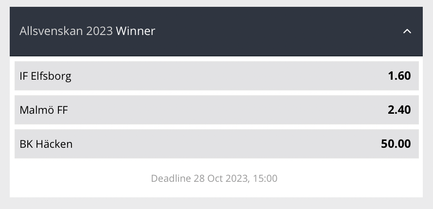 Oddsen gäller fram till helgens omgång. Om du vill spela finner du Betssons allsvenska odds på denna länk.