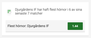 Till matchen har Unibet tagit fram specialodds utifrån Expertfakta – som baserar sig på aktuell statistik. Djurgården har haft flest hörnor i 6 av sina 7 senaste matcher. Odds och länk till spelet hittar du i rubriken nedan:
