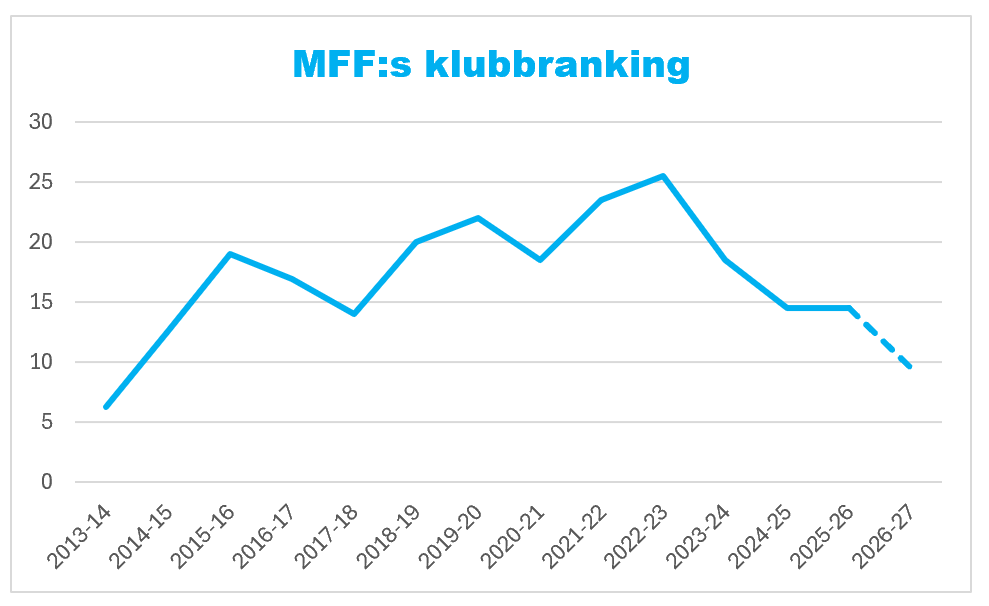Om MFF får kvala 2027 räcker 9,5 poäng absolut inte till seedning i Champions Leagues andra kvalomgång (knappt till den första heller, men den slipper man) och kan vara för lite även för Europa Leagues första kvalomgång. I Conference League-kvalet skulle det räcka till seedning i Q2, möjligen i Q3 men aldrig i playoff.