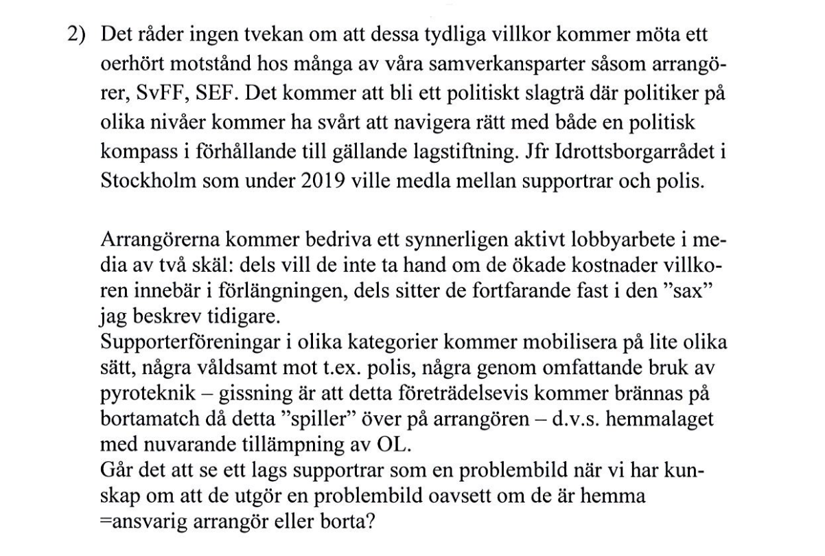 Häromdagen skrev jag om hur polisregionerna ute i landet kritiserade region Stockholm som ansvarat för Idrottsrådet och drivit på för villkorstrappa och repression under de senaste åren. Att den linjen inte backas upp av alla inom myndigheten är tydligt.