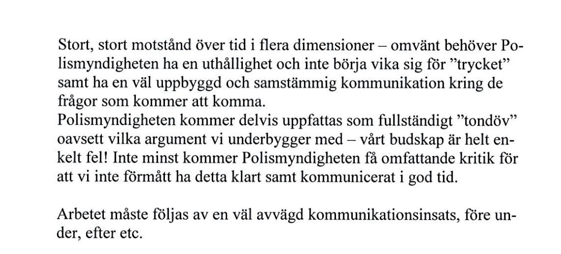 Att uthålligheten är avgörande återkommer också från Ulf Johansson. Polisen vet att deras strategier kommer att stöta på motstånd från många håll, men det spelar ingen roll: de SKA genomföras oavsett konsekvenser.