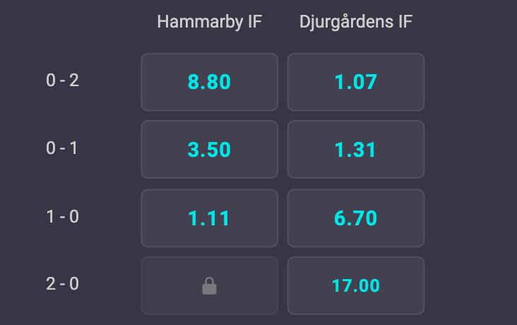 På asian handicap ligger de stora pengarna att hämta om man tror att Djurgården trotsar oddsen och tar hem en komfortabel seger med minst två mål. Detta ligger på 6,70 gånger pengarna.