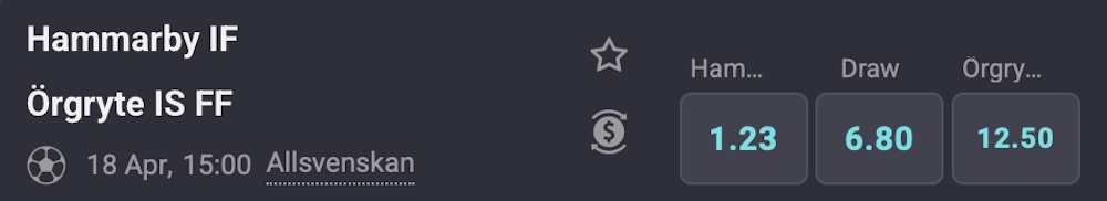 För den som tror på en Hammarby-seger ger hemmaseger 1,23 gånger insatsen.