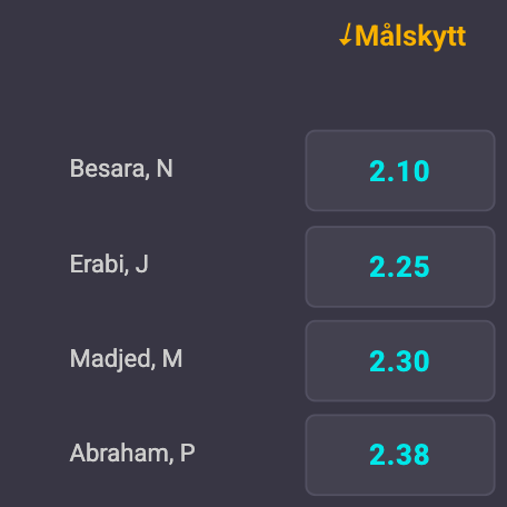 De mest sannolika målskyttarna tillhör alla Hammarby där Nahir Besara sedvanligt står som den mest troliga målgöraren med 2,10 gånger pengarna. Han följs av sina lagkamrater Jusef Erabi, Montader Madjed och Paulos Abraham. Den sistnämnde är däremot skadad och inte tillgänglig i matchen. Mest troliga Halmstadmålskytt är Yannick Agnero som står på 3,80 gånger pengarna.
